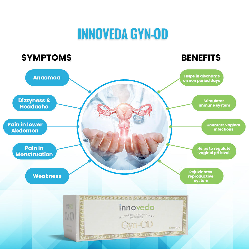 Gyn OD is an Ayurvedic medicine for strengthening the reproductive health of women. It contains a blend of herbs known for their antimicrobial, anti-inflammatory, and soothing properties